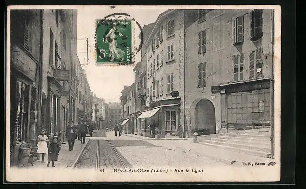 AK Rive-de-Gier, Rue de Lyon, Strassenpartie