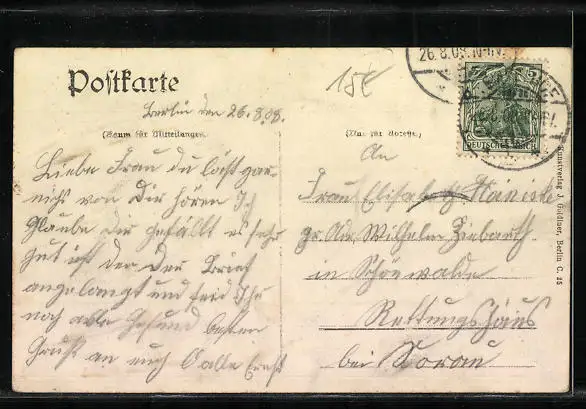 alte Ansichtskarte, gelaufen 1908, Eckknick rechts unten, guter Zustand