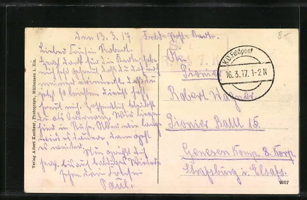 alte Ansichtskarte, gelaufen 1917 als Feldpost, guter Zustand