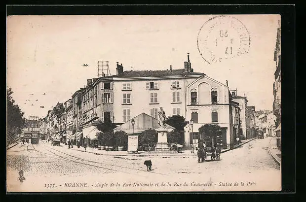 AK Roanne, Angle de la Rue Nationale, Tramway