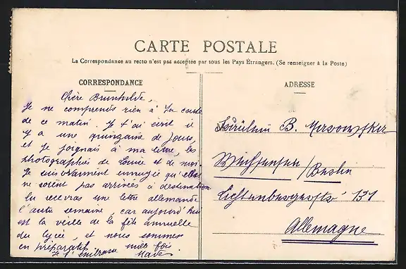 Personenbezogene Daten auf der Rückseite der Karte wurden durch blauen Textmarker unkenntlich gemacht. Die blauen Stellen sind auf die Vorderseite durchgeweicht und wirken sich negativ auf das Postkartenfoto aus