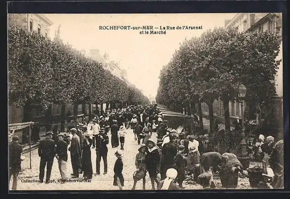 AK Rochefort-sur-Mer, La Rue de l`Arsenal et le Marche