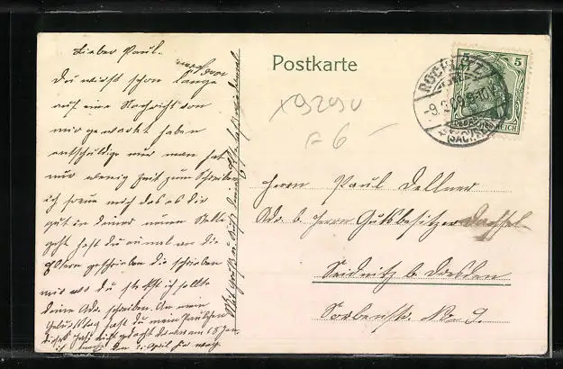 alte Ansichtskarte, gelaufen 1909, guter Zustand