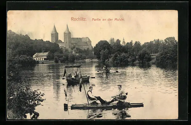 AK Rochlitz i. Sa., Partie an der Mulde, Ruderboote