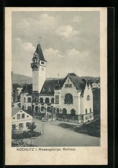 AK Rochlitz im Riesengebirge, Blick auf das Rathaus