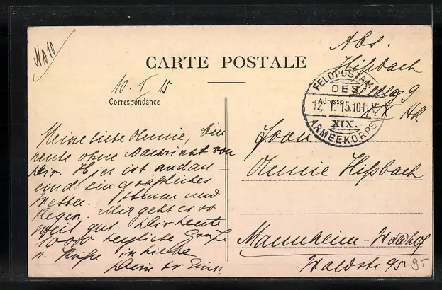 alte Ansichtskarte, gelaufen 1915 als Feldpost, guter Zustand