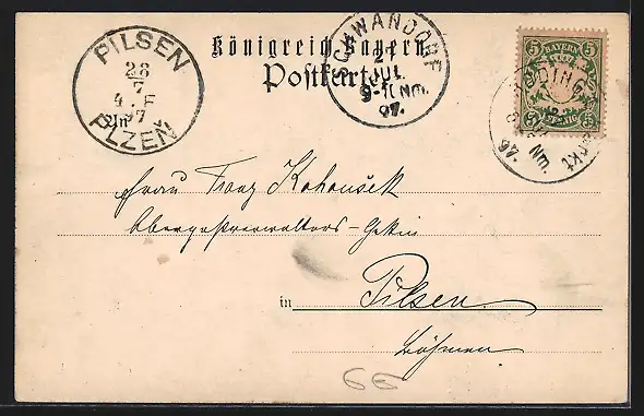 alte Ansichtskarte, gelaufen 1897, guter Zustand