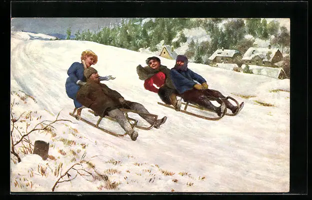 AK Rodler beim Wettrennen mit ihrem Schlitten