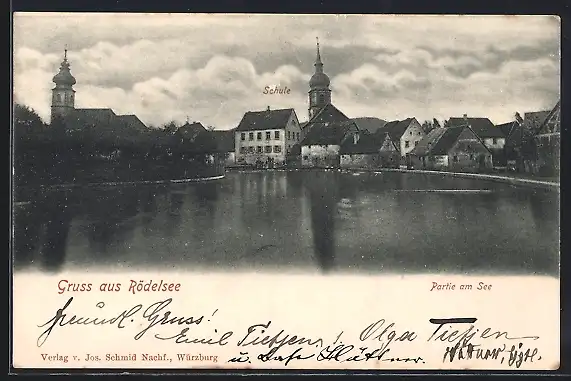 AK Rödelsee, Uferpartie mit Kirche
