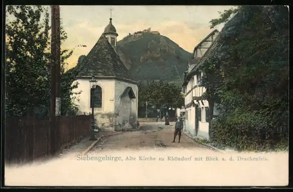 AK Röhndorf, Alte Kirche m. Blick auf Drachenfels