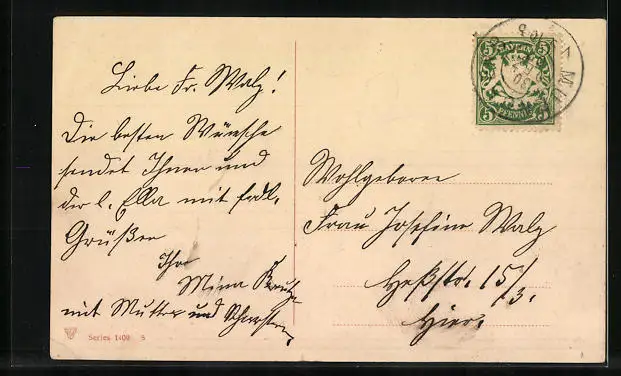 alte Ansichtskarte, gelaufen 1907, Eckknick unten re., guter Zustand