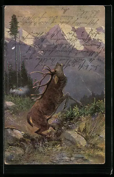 AK Röhrender Hirsch in den Alpen