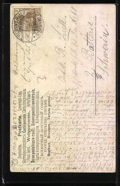 alte Ansichtskarte, gelaufen 1906, Bugspur re. Mitte, guter Zustand