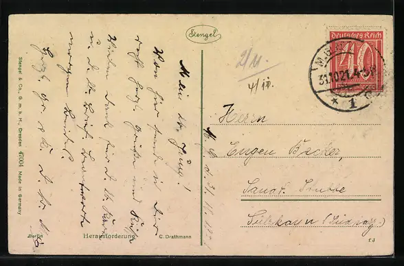alte Ansichtskarte, gelaufen 1921, guter Zustand