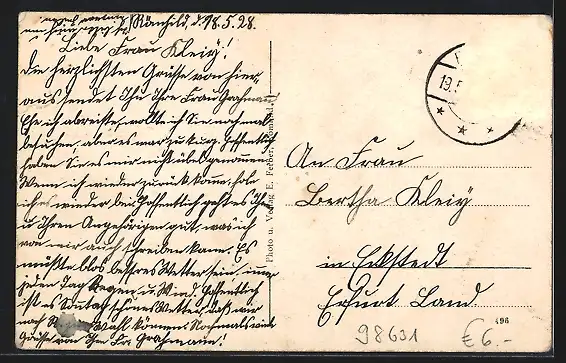 alte Ansichtskarte, gelaufen 1928, Briefmarke entfernt, guter Zustand