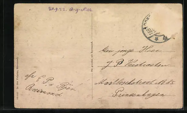 alte Ansichtskarte, gelaufen, Briefmarke entfernt, guter Zustand