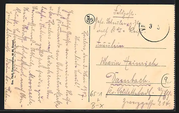 gelaufen 1917, Briefmarke entfernt, aus Leporello, guter Zustand