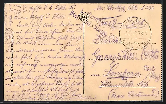 alte Ansichtskarte, gelaufen 1915, Eckknick re. unten, guter Zustand