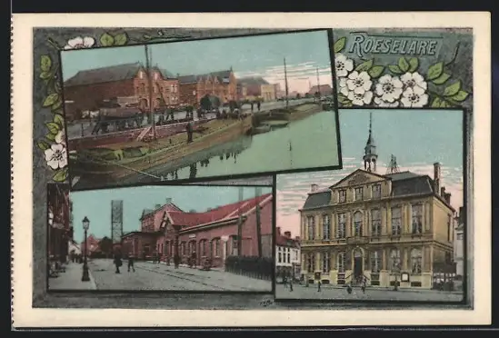 AK Roeselare, Ortsansicht bei Dämmerung, Strassenpartie
