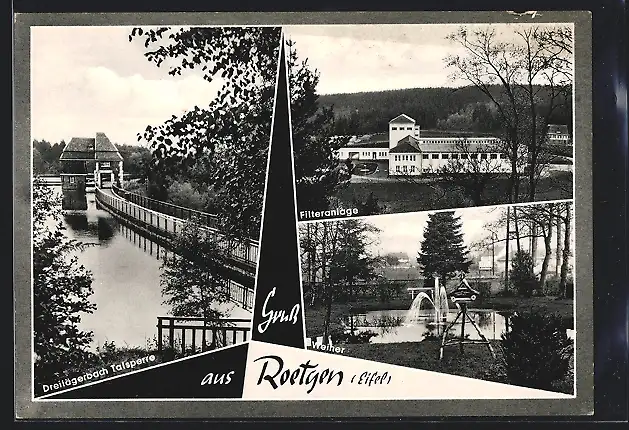 AK Roetgen /Eifel, Dreilägerbach Talsperre, Filteranlage, Weiher