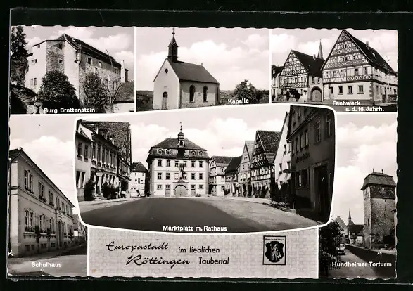 AK Röttingen /Taubertal, Hundheimer Torturm, Marktplatz mit Rathaus