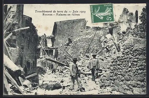 AK Rognes, Erdbeben 1909, Häuserruinen