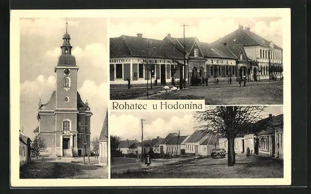 AK Rohatec u Hodonina, Kirche, Turnhalle, Ortspartie