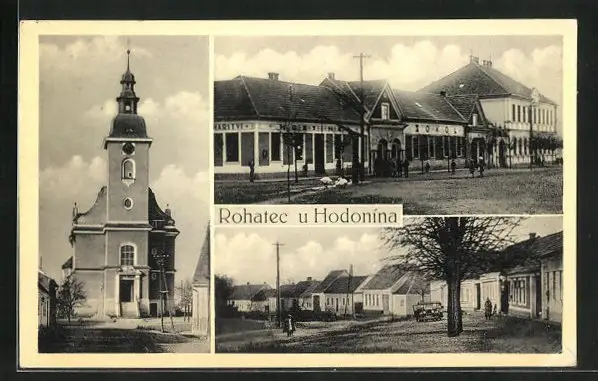 AK Rohatec u Hodonina, Kirche, Turnhalle, Ortspartie