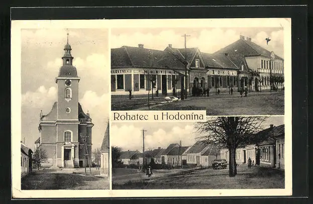AK Rohatec u Hodonina, Kirche, Turnhalle, Ortspartie
