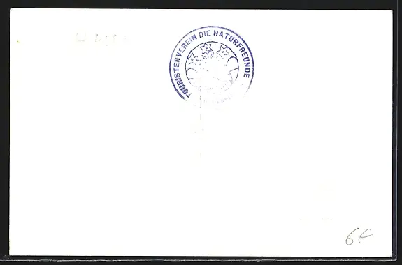 Personenbezogene Daten auf der Rückseite der Karte wurden durch blauen Textmarker unkenntlich gemacht. Die blauen Stellen sind auf die Vorderseite durchgeweicht und wirken sich negativ auf das Postkartenfoto aus