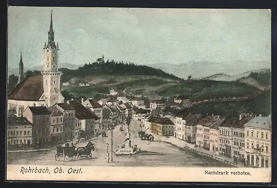 AK Rohrbach /O.-Oe., Strassenpartie mit Kirche