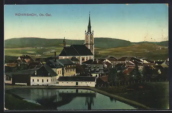 AK Rohrbach /Ob. Öst., Ortsansicht mit Kirche