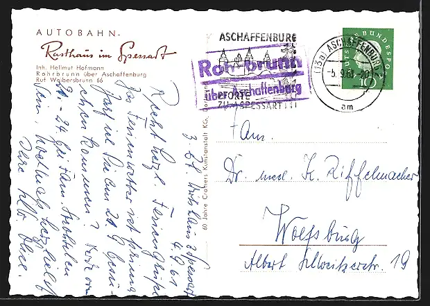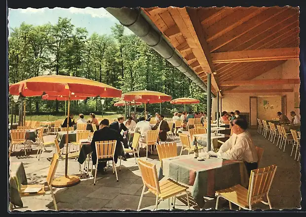 AK Rohrbrunn, Autobahn-Rasthaus im Spessart, Terrasse