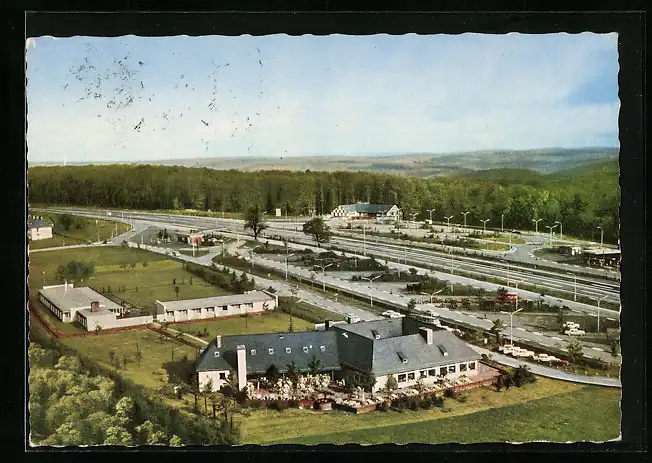 AK Rohrbrunn, Autobahn-Rasthaus im Spessart, Totalansicht