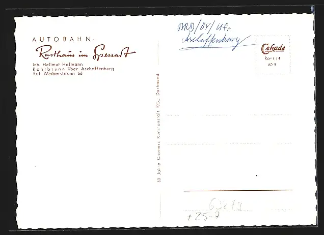 AK Rohrbrunn üb. Aschaffenburg, Autobahn-Raststätte Rasthaus im Spessart