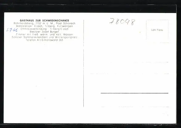 AK Rohrhardsberg bei Schonach, Gasthaus zur Schwedenschanze