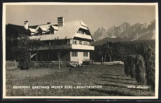 AK Rohrmoos, Gasthaus Moser mit Bergpanorama
