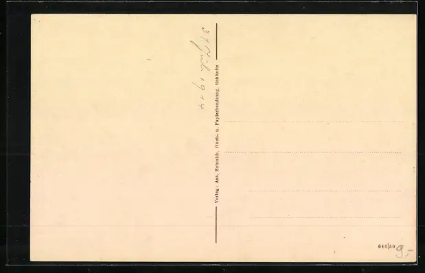 Personenbezogene Daten auf der Rückseite der Karte wurden durch blauen Textmarker unkenntlich gemacht. Die blauen Stellen sind auf die Vorderseite durchgeweicht und wirken sich negativ auf das Postkartenfoto aus