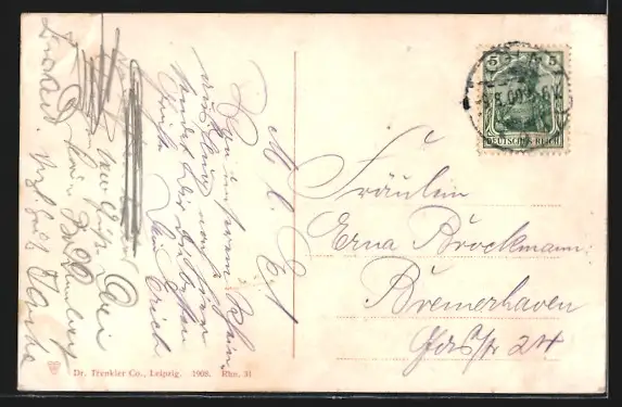 alte Ansichtskarte, gelaufen 1909, Eckknick li. unten, guter Zustand