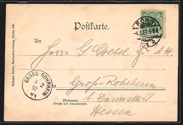 alte Ansichtskarte, gelaufen 1897, guter Zustand