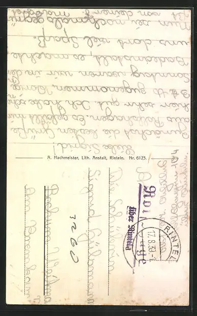alte Ansichtskarte, gelaufen 1939, Briefmarke entfernt, rückseitig Oberflächenschaden, guter Zustand