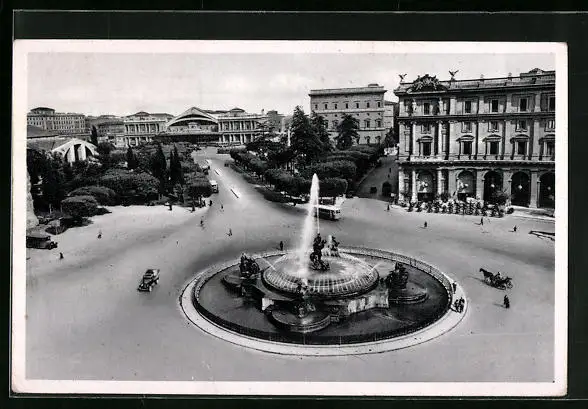 AK Rom, Piazza dell`Esedra und Termini-Bahnhof, Strassenbahn