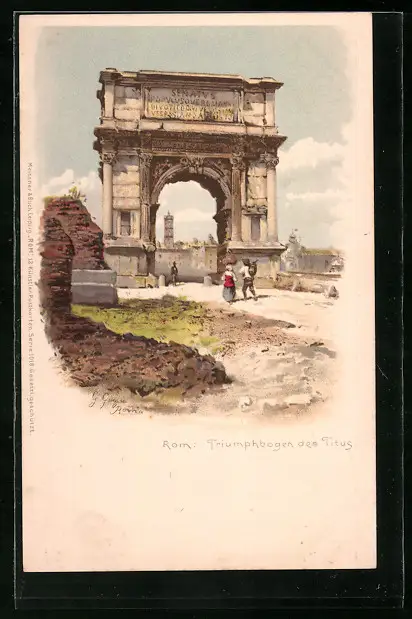 AK Rom, Pittoreske Szene am Triumphbogen des Titius