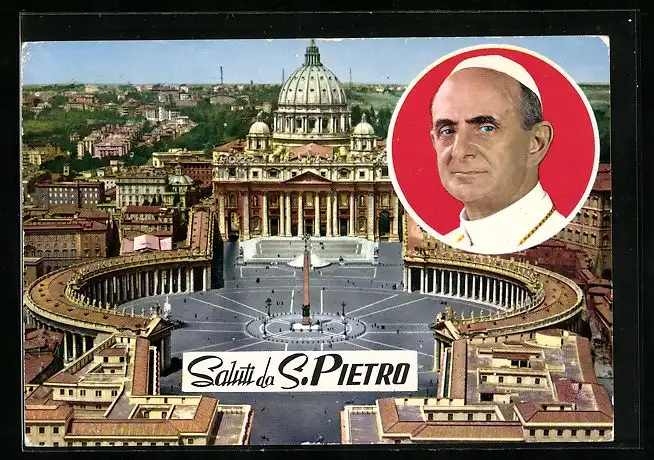 AK Rom, St. Peters Platz mit Portraot von Papst Paul VI.