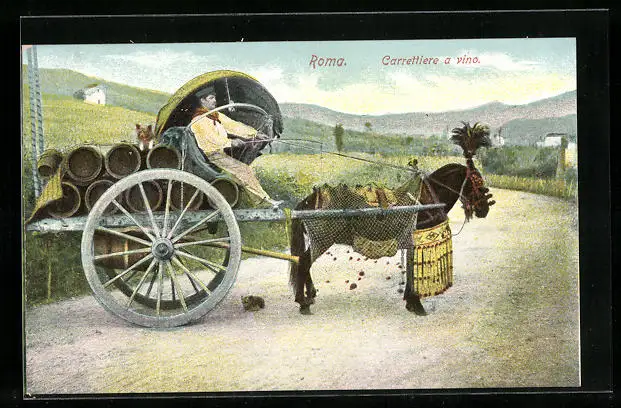 AK Rom, Transport von Weinfässern in einem improvisierten Einspänner