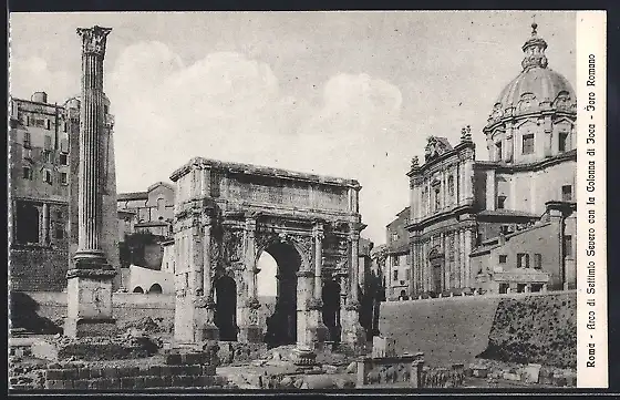 AK Roma, Arco di Settimio Severo con la Colonna di Joca, Foro Romano