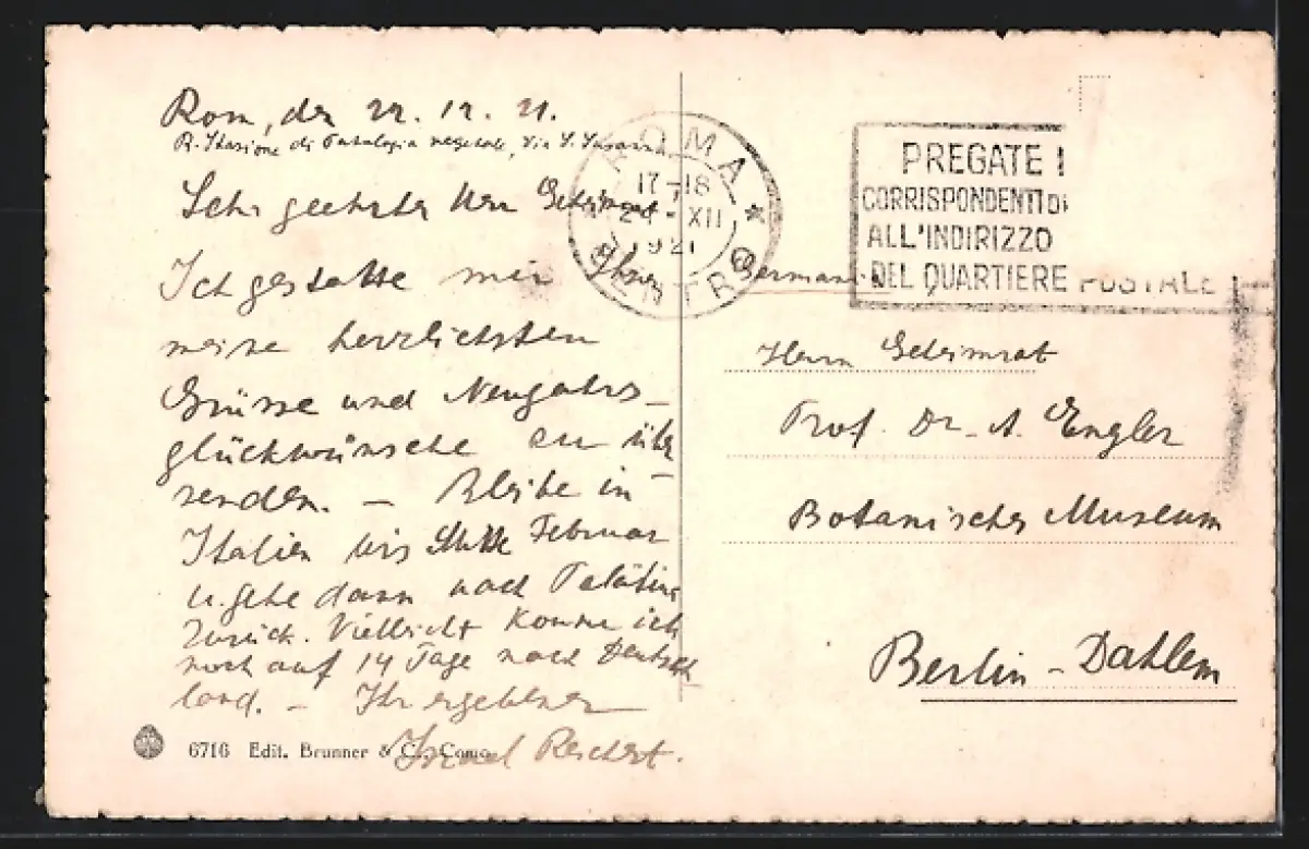 alte Ansichtskarte, gelaufen 1921, Briefmarke entfernt, rückseitig Oberflächenschaden, Eckknick re. oben, guter Zustand