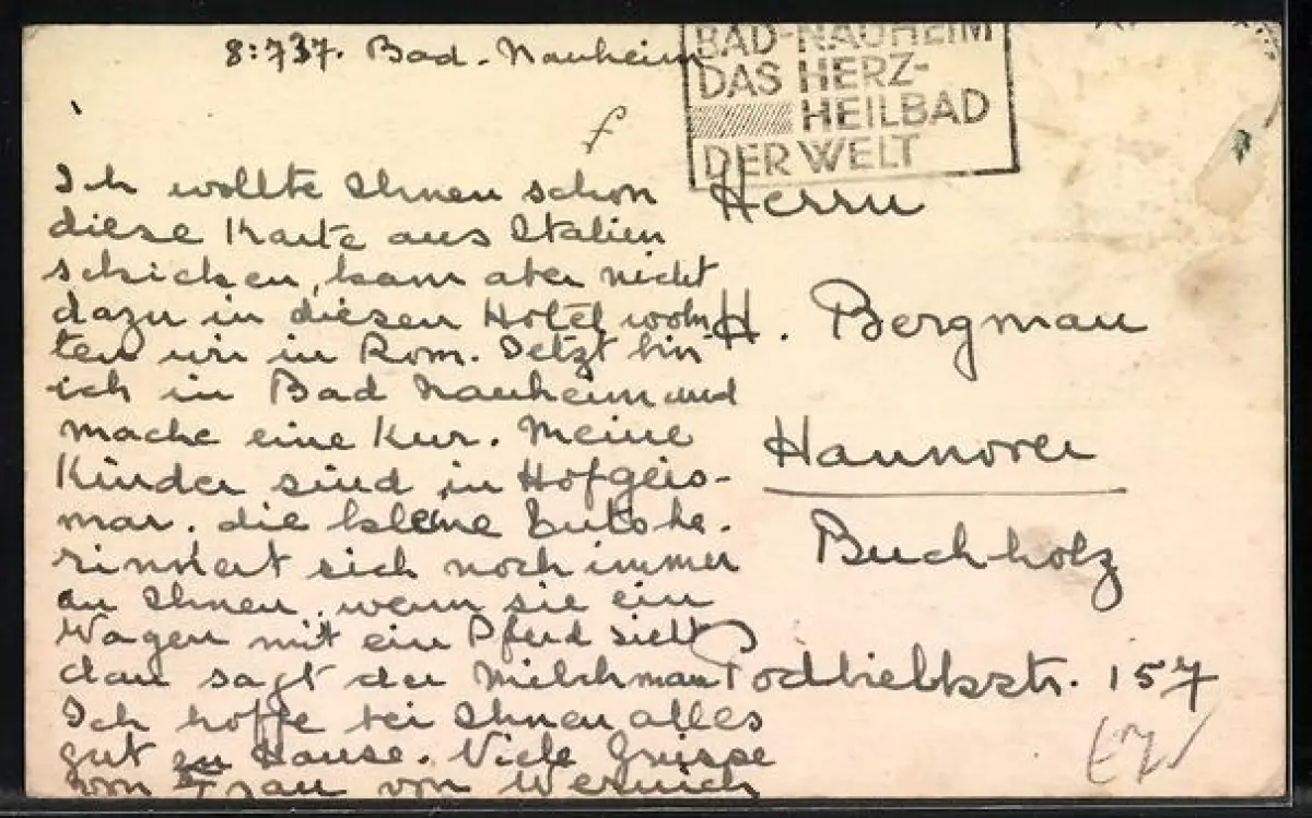 alte Ansichtskarte, gelaufen, Briefmarke entfernt, rückseitig Oberflächenschaden, Eckknick li. oben, Bugspuren li. oben, guter Zustand
