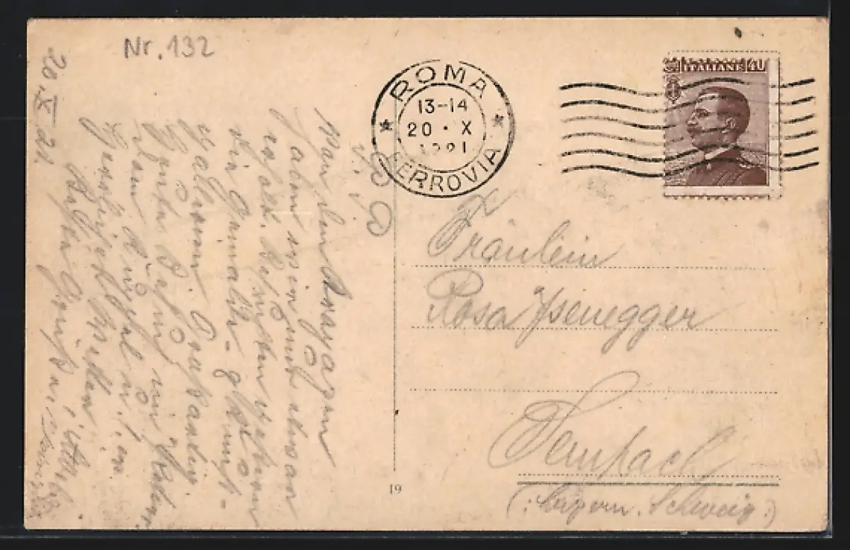 gelaufen 1921, Eckknick re. oben, guter Zustand