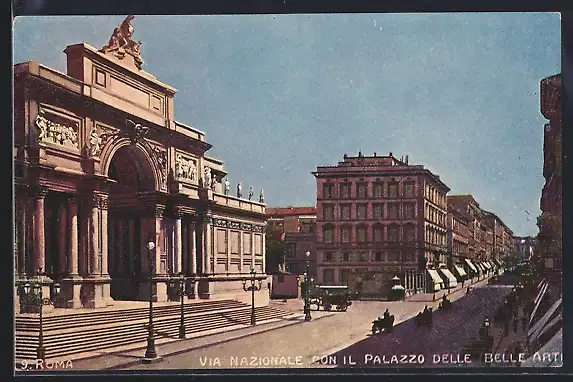 AK Roma, Via Nazionale con il Palazzo delle Belle Art